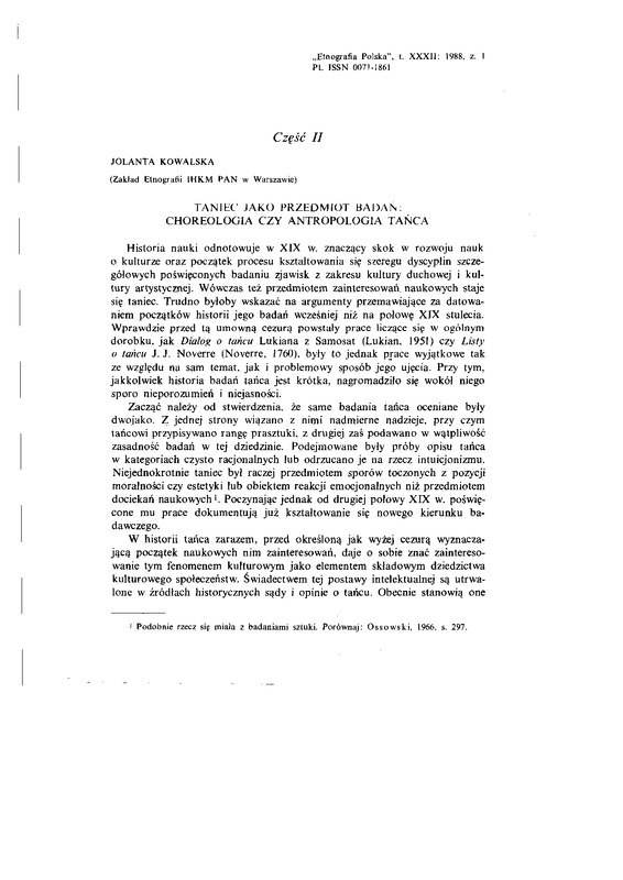Taniec jako przedmiot badań: choreologia czy antropologia tańca / ETNOGRAFIA POLSKA 1988 t.32 z.1
