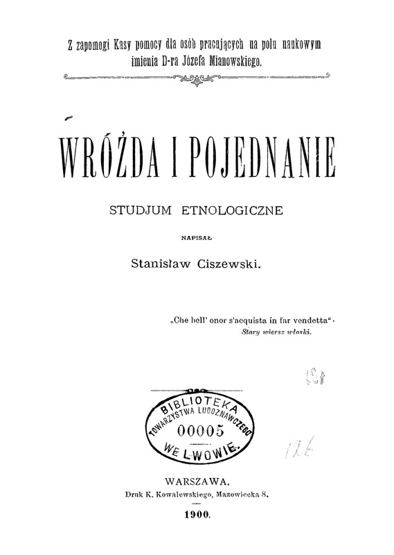 Wróżda i pojednanie: studjum etnologiczne