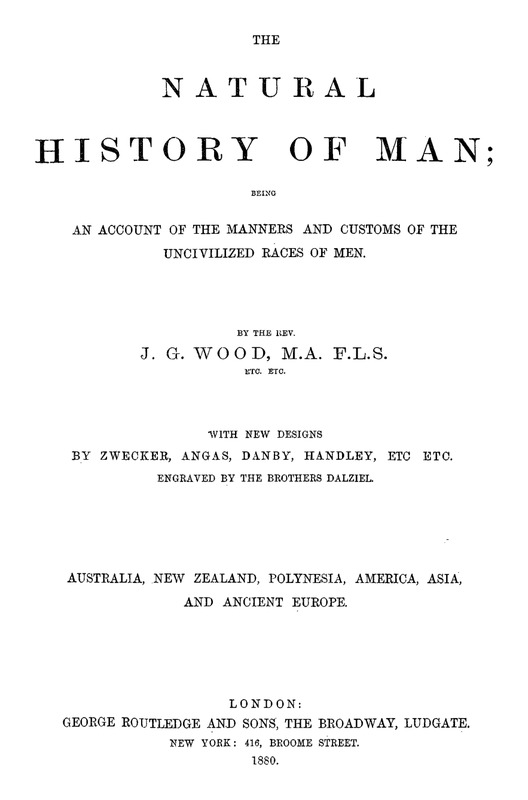 The Natural History of Man; being an account of the manners and customs of the uncivilized races of men: Australia, New Zeland, Polynesia, America, Asia and Ancient Europe