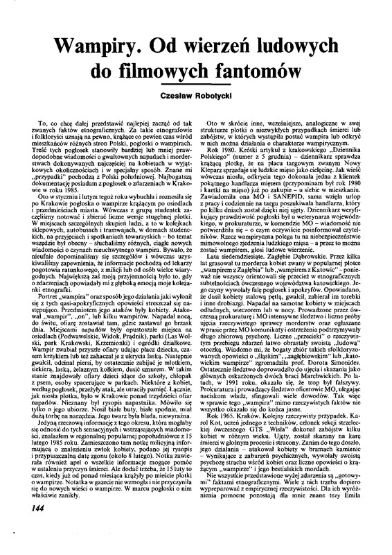 Wampiry. Od wierzeń ludowych do filmowych fantomów / Polska Sztuka Ludowa - Konteksty 1992 t.46 z.3-4