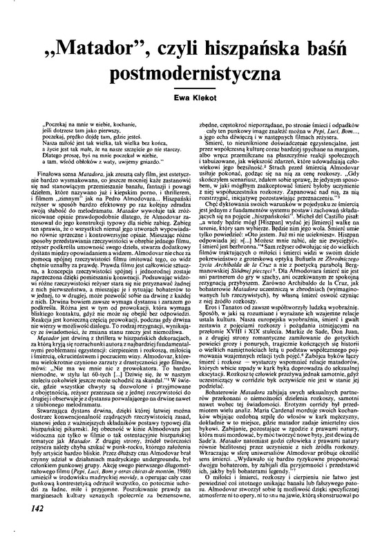 "Matador", czyli hiszpańska baśń postmodernistyczna / Polska Sztuka Ludowa - Konteksty 1992 t.46 z.3-4