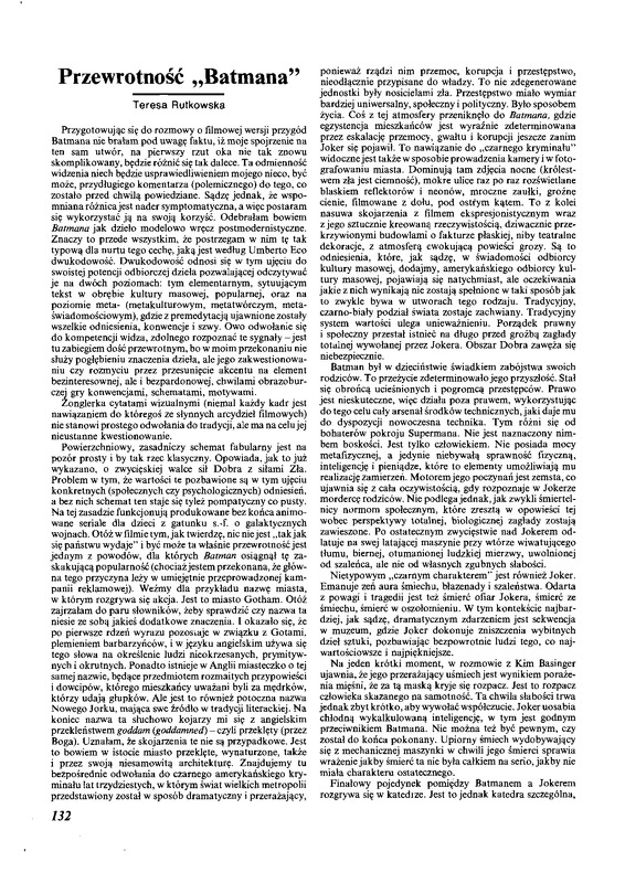 Przewrotność "Batmana"; Zapis dyskusji o filmie "Batman" / Polska Sztuka Ludowa - Konteksty 1992 t.46 z.3-4