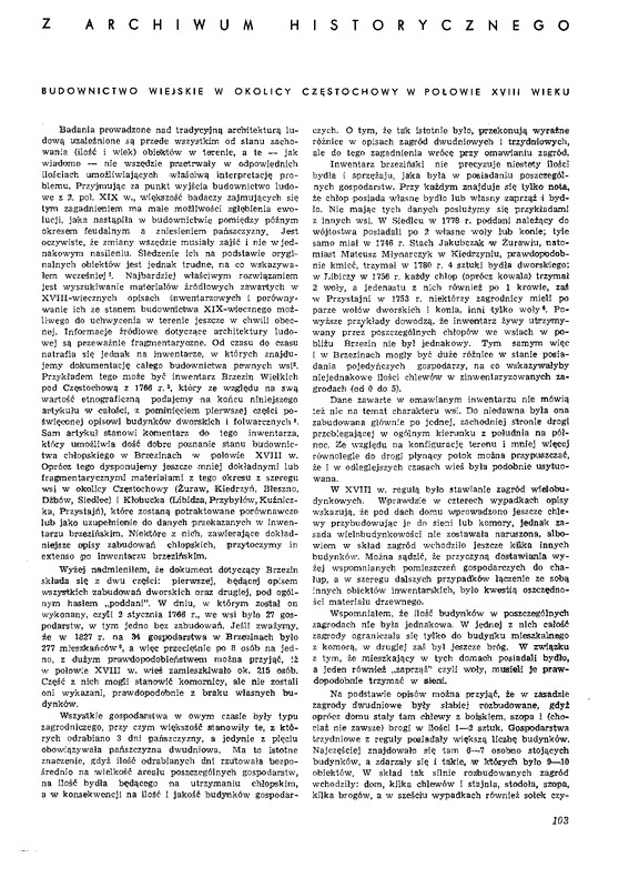 Budownictwo ludowe z okolic Częstochowy w połowie XVIII wieku / Polska Sztuka Ludowa - Konteksty 1971 t.25 z.2