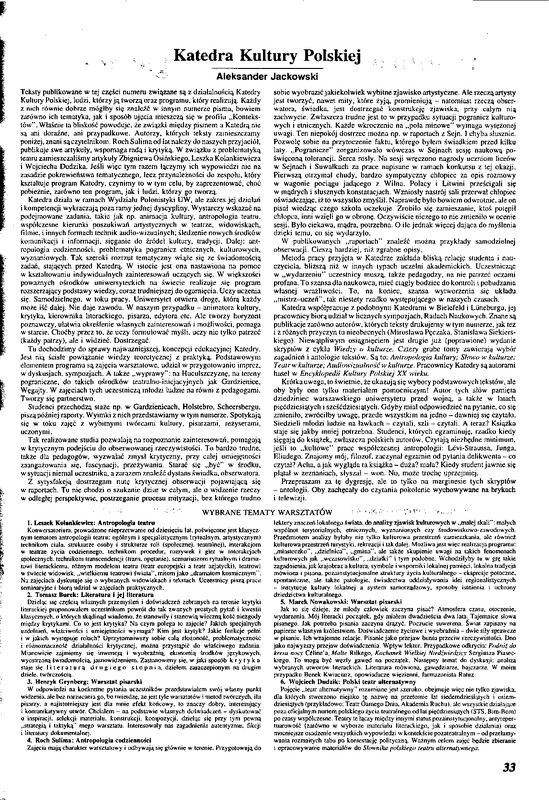kształtuje program Katedry, czynimy to w tym celu, by zaprezentować, choć