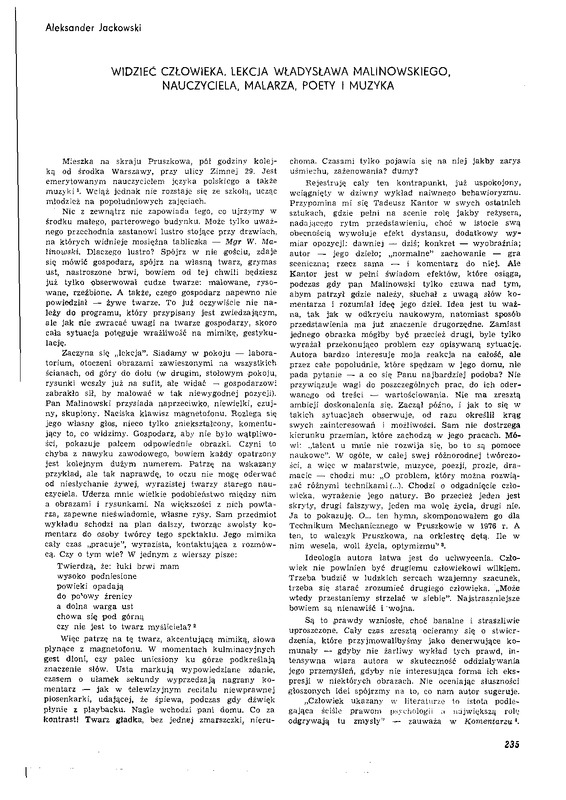 WIDZIEĆ CZŁOWIEKA. LEKCJA WŁADYSŁAWA MALINOWSKIEGO,