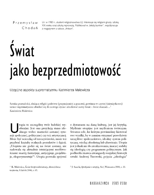 Świat jako bezprzedmiotowość/ Barbarzyńca 2008 nr 2(12)