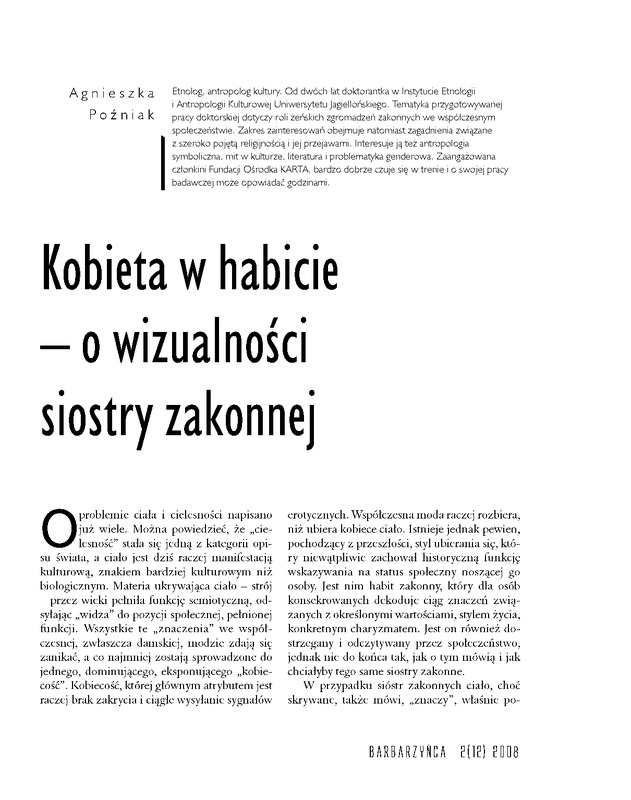 Kobieta w habicie - o wizualności siostry zakonnej/ Barbarzyńca 2008 nr 2 (12)
