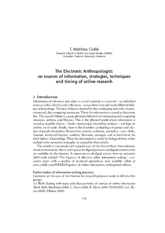 The Electronic Anthropologist : on sources of information, strategies, techniques and timing of online research/ Antropolog wobec współczesności