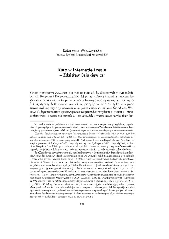 znajduje się na w w w . k u r p i e . c o m . p l : „Zdzisław Bziukiewicz [ . . . ] o d swoich rodziców, znanych bursztyniarzy przejął umiejętności i wzory: [ . . . ] Bursztyniarstwem zajmuje się o d najmłodszych lat. Z a