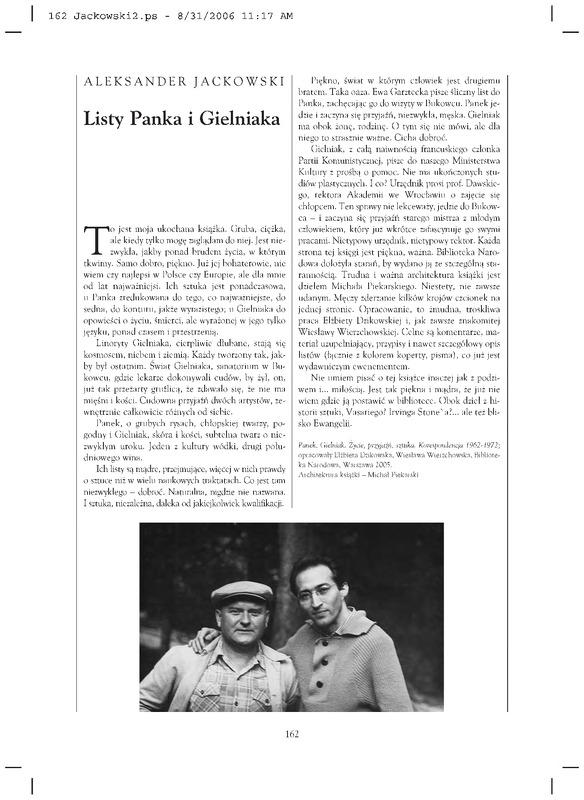 zwykłym uroku. Jeden z kultury wódki, drugi połu Panek, Gielniak. Zycie, przyjaźń, sztuka. Korespondencja 1962-1972;