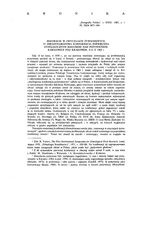 Kronika / ETNOGRAFIA POLSKA 1987 t.31 z.1