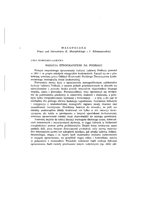 Badania etnograficzne na Podhalu / ETNOGRAFIA POLSKA 1958 t.1