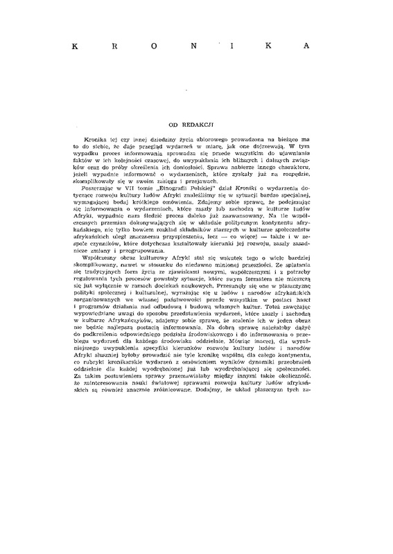 Poszerzając w V I I tomie „Etnografii Polskiej" dział Kroniki o wydarzenia do