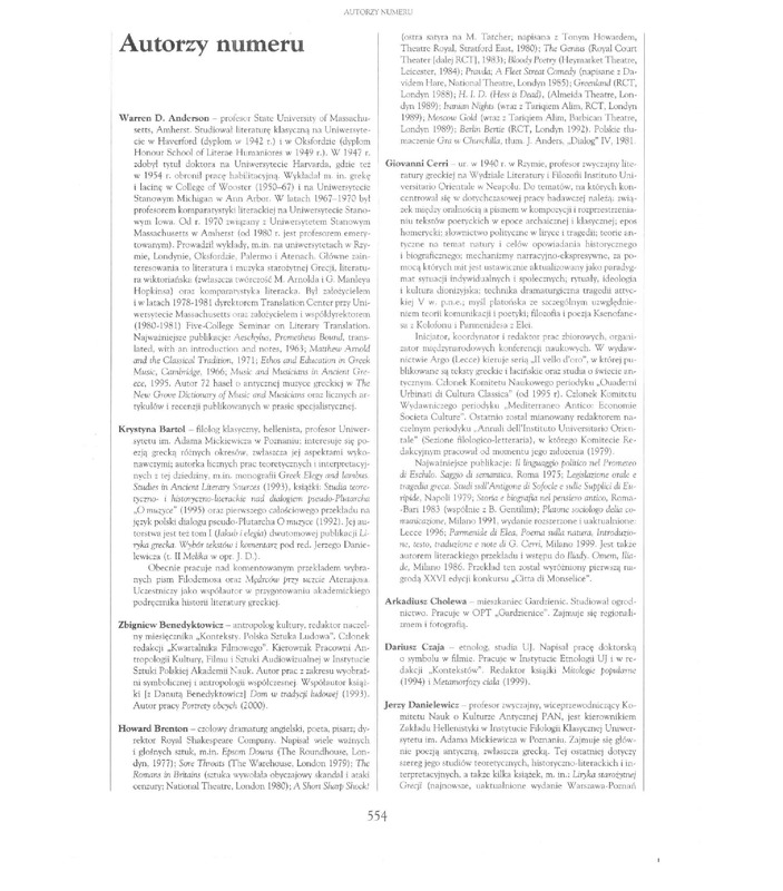 A u t o r 72 haseł o antycznej muzyce greckiej w The