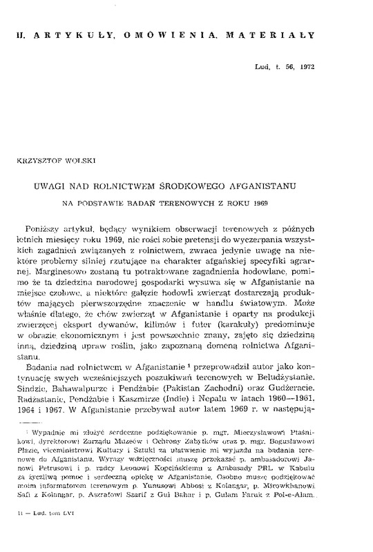 Uwagi nad rolnictwem środkowego Afganistanu / LUD 1972 t.56