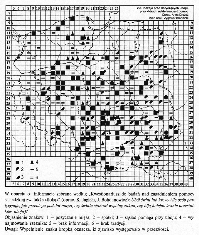Rodzaje prac dotyczących uboju, przy których udzielana jest pomoc/ Komentarze do Polskiego Atlasu Etnograficznego (mapy)