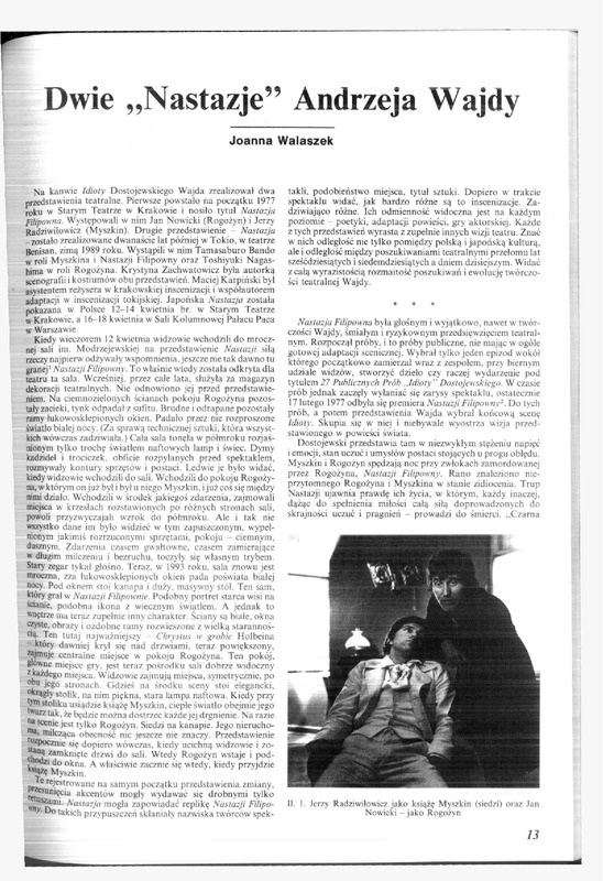 W roli Myszkina i Nastazji Filipowny oraz Toshiyuki Nagashima w roli Rogożyna. Krystyna Zachwatowicz b y ł a autorką