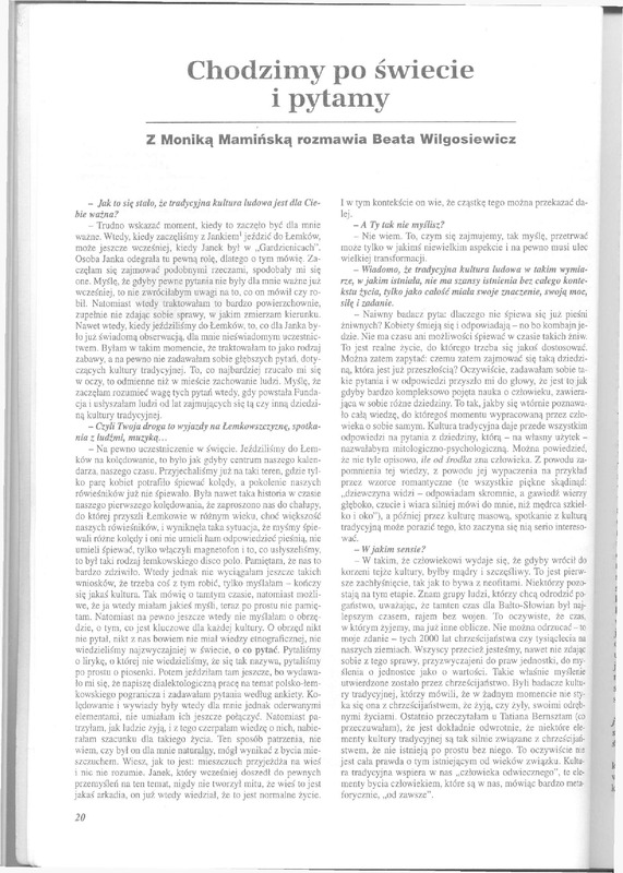 - Jak to się stało, że tradycyjna kultura łudowa jest dła Cie I w tym kontekście on wie, że cząstkę tego można przekazać dabie ważna?