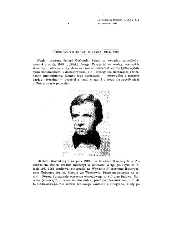 Gerhard Konrad Kloska. 1943-1979 / ETNOGRAFIA POLSKA 1981 t.25 z.1