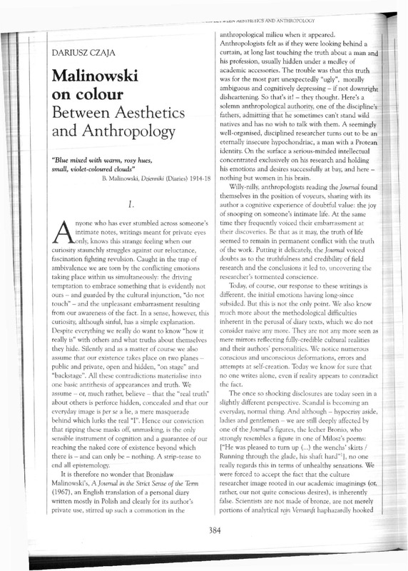 Malinowski on colour. Between Aesthetics and Anthropology=Malinowski o kolorach. Między estetyką a antropologią / Polska Sztuka Ludowa - Konteksty 2000 t.54 z.1-4