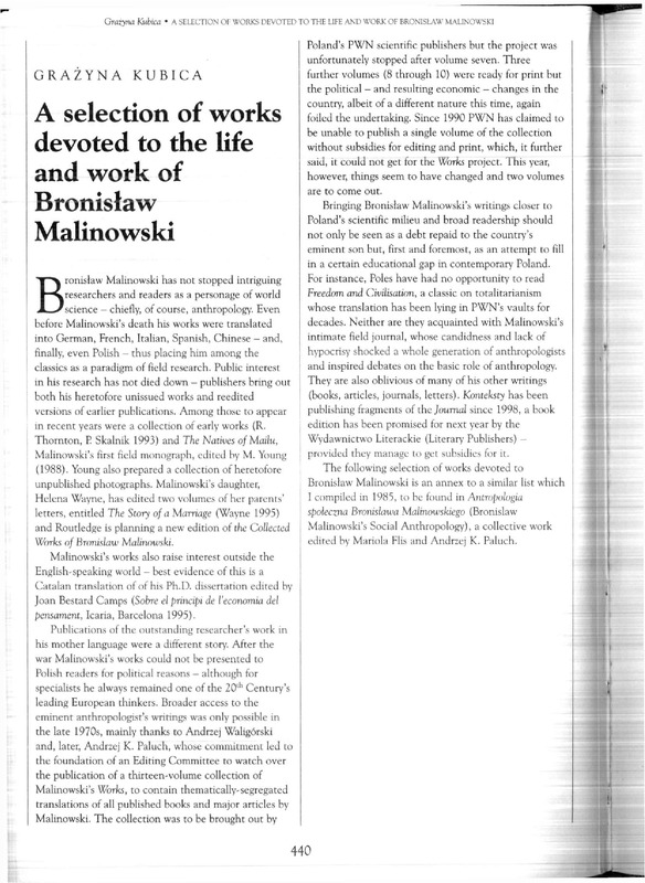 Grażyna Kubica • A SELECTION O F WORKS D E V O T E D T O T H E LIFE A N D WORK O F BRONISŁAW MALINOWSKI