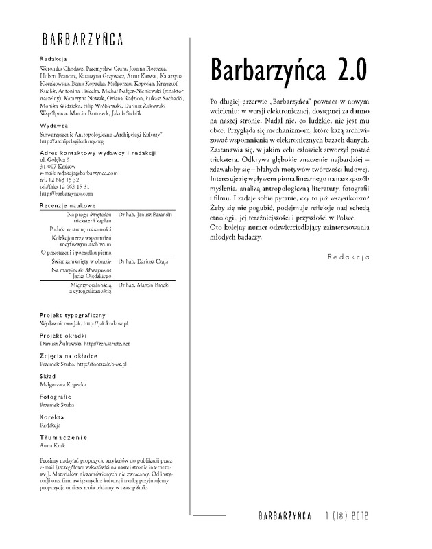 Barbarzyńca - pismo antropologiczne, 2012 nr 1 (18)
