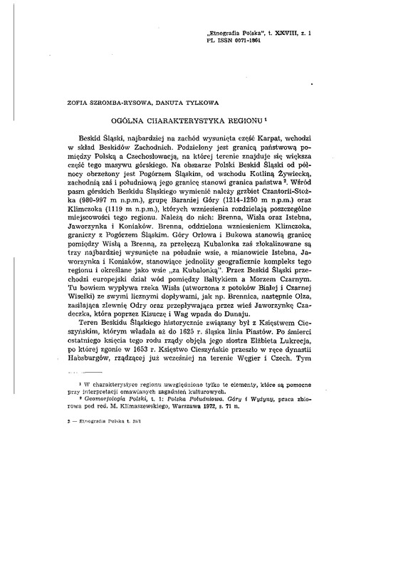 Ogólna charakterystyka regionu / ETNOGRAFIA POLSKA 1984 t.28 z.1