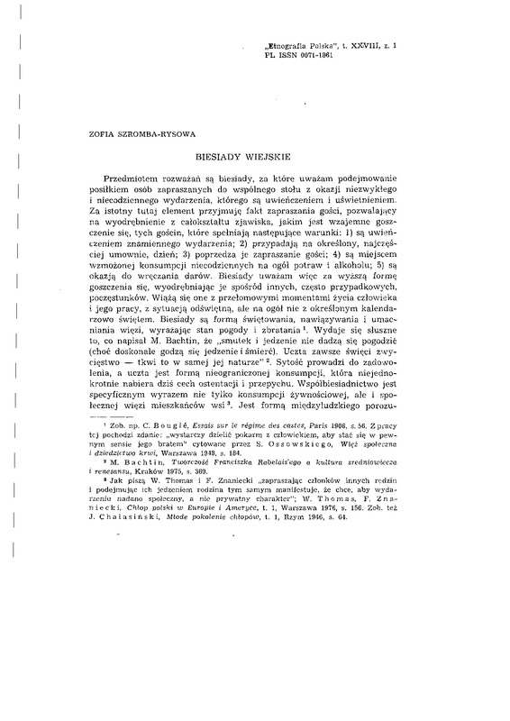 Biesiady wiejskie / ETNOGRAFIA POLSKA 1984 t.28 z.1