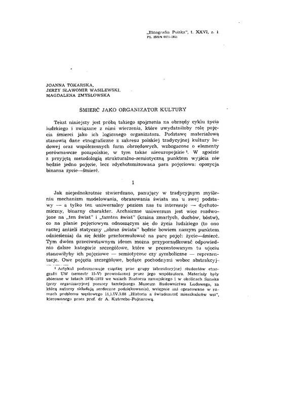 Śmierć jako organizator kultury / ETNOGRAFIA POLSKA 1982 t.26 z.1