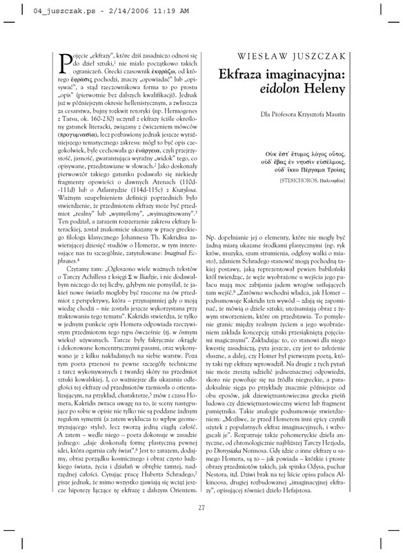 Ekfraza imaginacyjna: 'eidolon' Heleny/ Polska Sztuka Ludowa - Konteksty 2005 t.59 z.3
