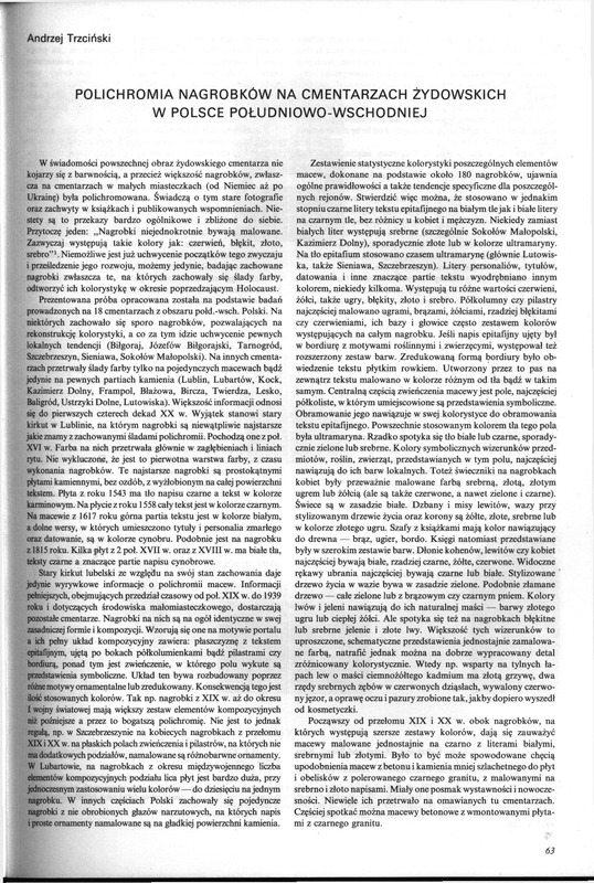 jedynie wyrywkowe informacje o polichromii macew. Informacji