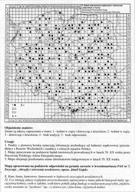 Zakaz zapraszania ciężarnych i dziewcząt z dzieckiem 'w kumy'/ Komentarze do Polskiego Atlasu Etnograficznego (mapy)