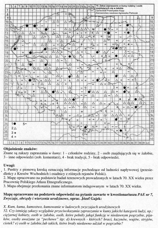 Zakaz zapraszania 'w kumy' rodzsiny i osób znajdujących się w żałobie/ Komentarze do Polskiego Atlasu Etnograficznego (mapy)