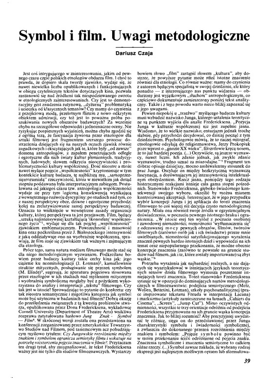 Symbol i film.Uwagi metodologiczne / Polska Sztuka Ludowa - Konteksty 1992 t.46 z.3-4