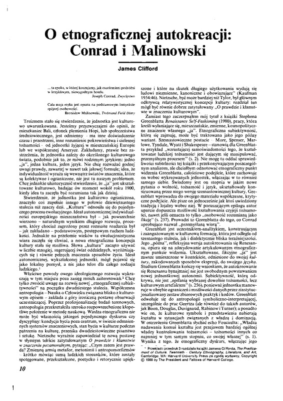 Samokreacja etnograficzna: Conrad i Malinowski / Polska Sztuka Ludowa - Konteksty 1992 t.46 z.3-4