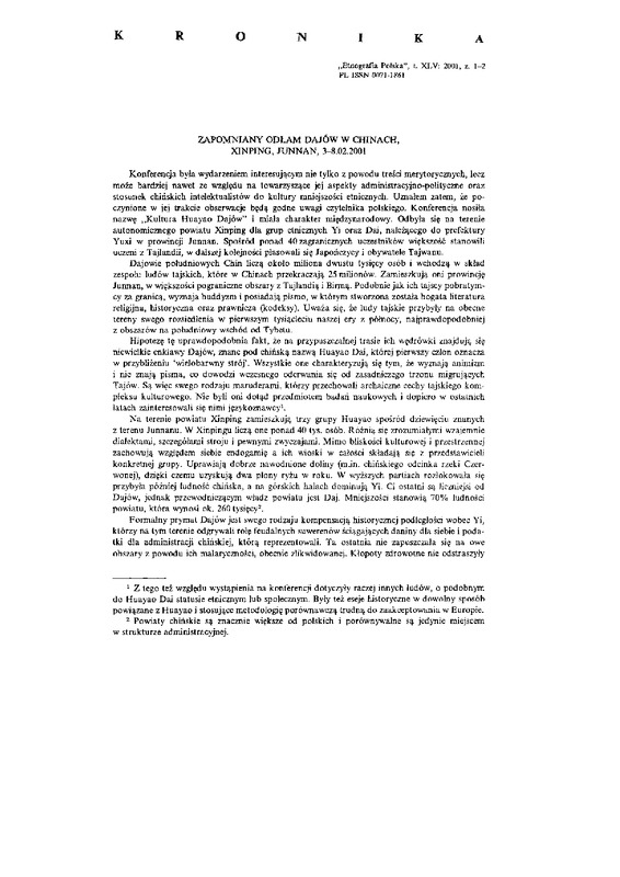 „Etnografia Polska", t. X L V : 2001, z. 1-2