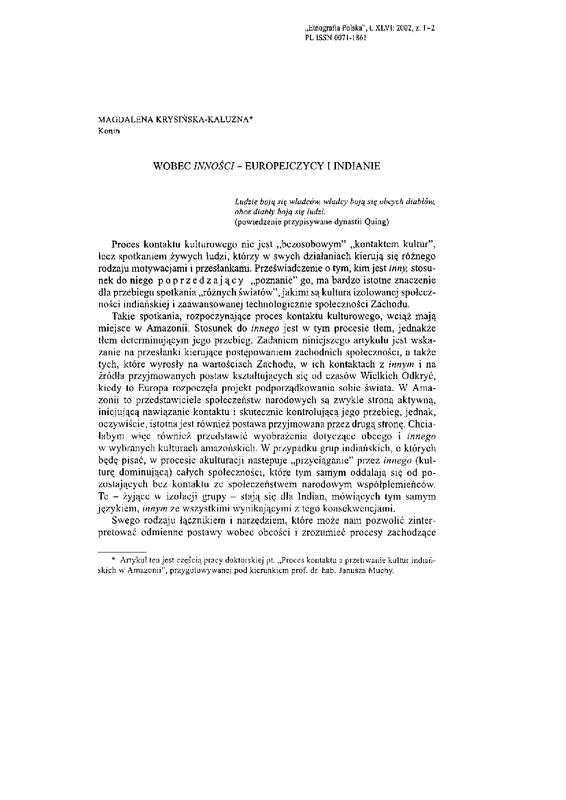 Wobec "inności" - Europejczycy i Indianie / ETNOGRAFIA POLSKA 2002 t.46