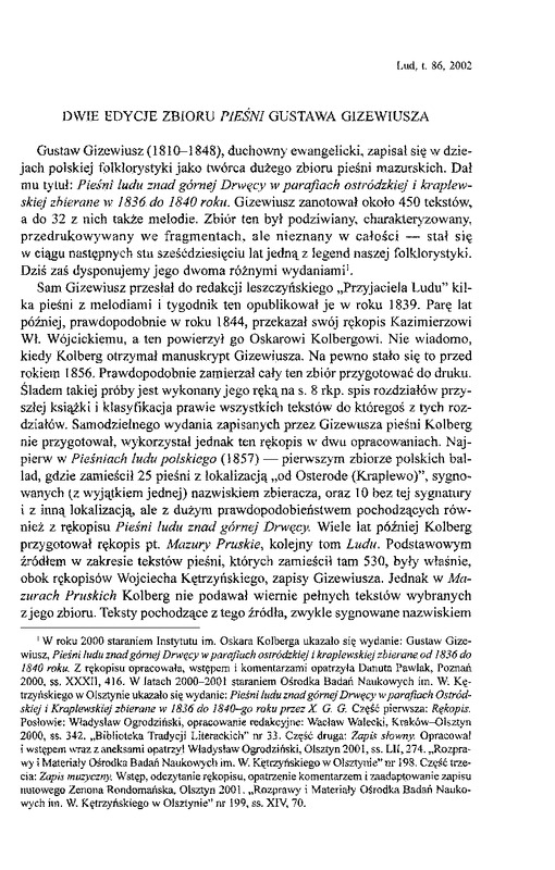 Dwie edycje zbioru "Pieśni" Gustawa Gizewiusza / LUD 2002 t.86
