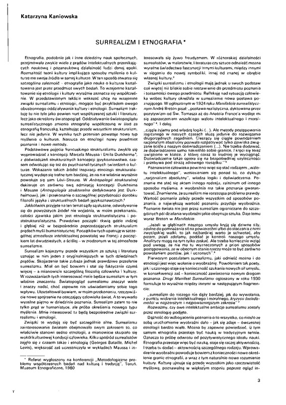 Surrealizm i etnografia / Polska Sztuka Ludowa - Konteksty 1991 t.45 z.1