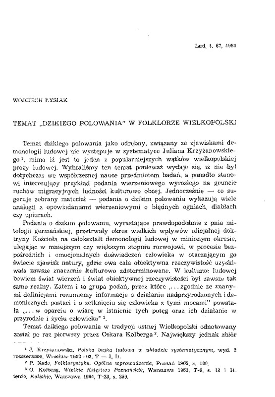 Temat "dzikiego polowania"w folklorze Wielkopolski / LUD 1983 t.67