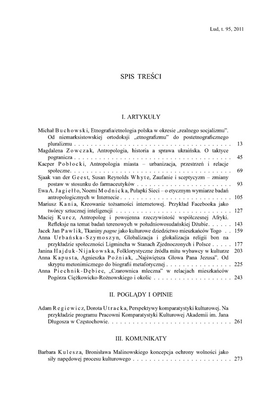 Kraków: Polskie Towarzystwo Ludoznawcze 2010 (Jan Swięcłi)........................ 363