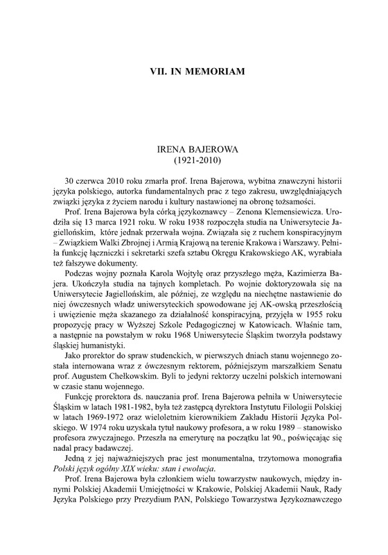 30 czerwca 2010 roku zmarła prof. Irena Bajerowa, wybitna znawczyni historii
