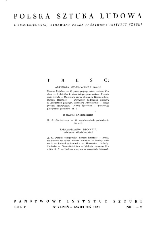 Polska Sztuka Ludowa 1951 t.5, z.1-2; s.1-2