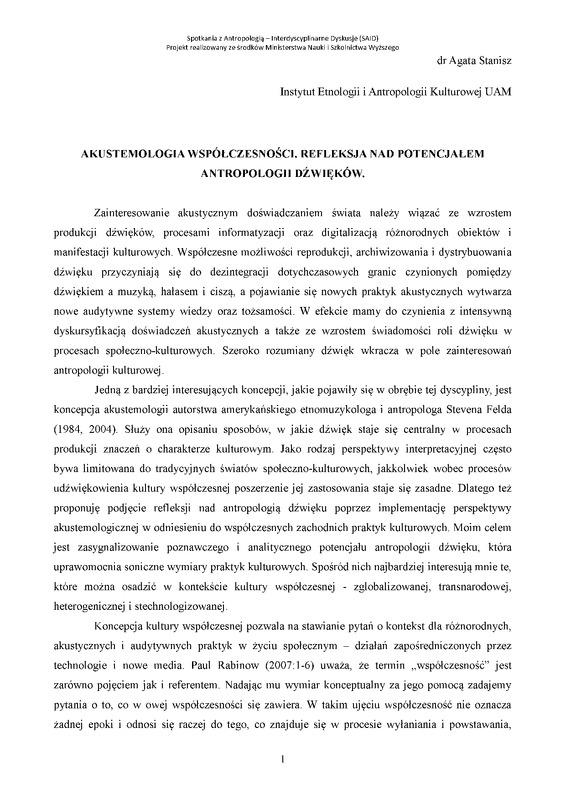Akustemologia współczesności. Refleksja nad potencjałem antropologii dźwięków / SAID