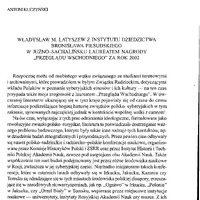 Władysław M.Łatyszew z Instytutu Dziedzictwa Brosnisława Piłsudskiego w Jużno-Sachalińskiu laureatem nagrody "Przegladu Wschodniego" za rok 2002/ LUD 2004 t.88