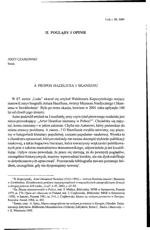 A propos Hazeliusa i Skansenu / LUD 2004 t.88