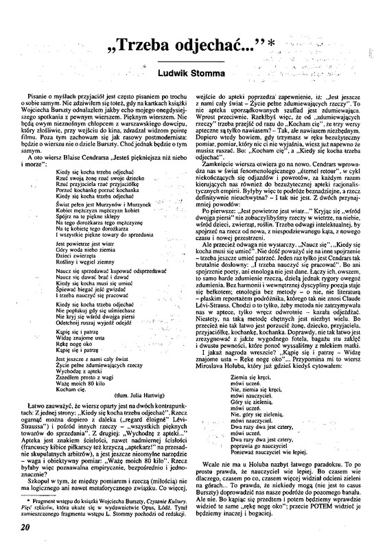 będzie o wierszu nie o dziele Burszty. C h o ć jednak będzie o tym