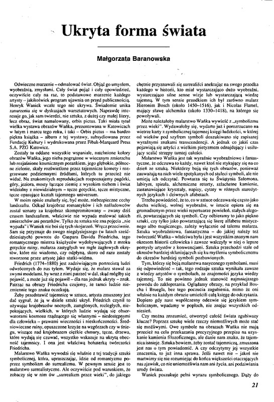 M o ż e należałoby malarstwo W a ń k a wywieść z „symbolizmu