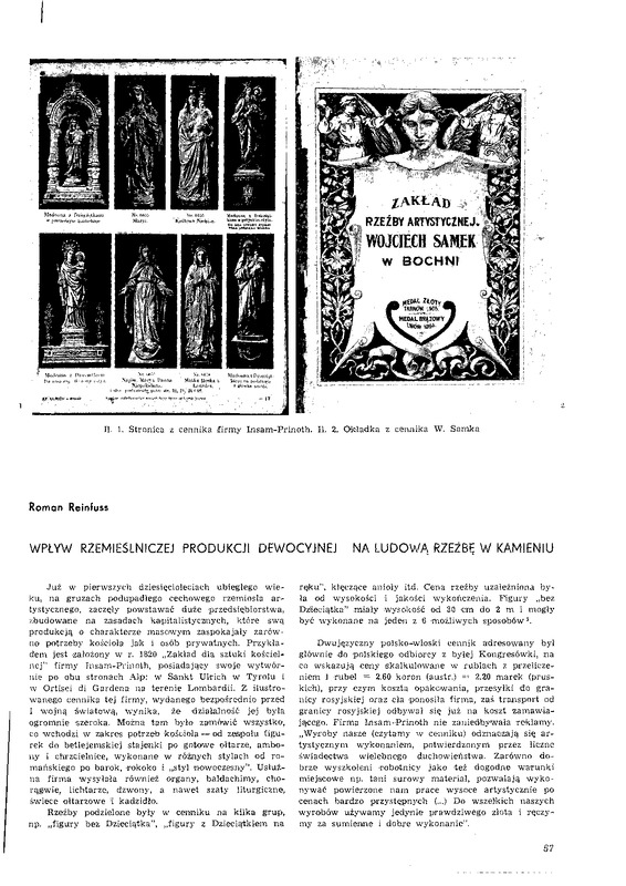 Wpływ rzemieślniczej produkcji dewocyjnej na ludową rzeźbę w kamieniu / Polska Sztuka Ludowa - Konteksty 1979 t.33 z.2