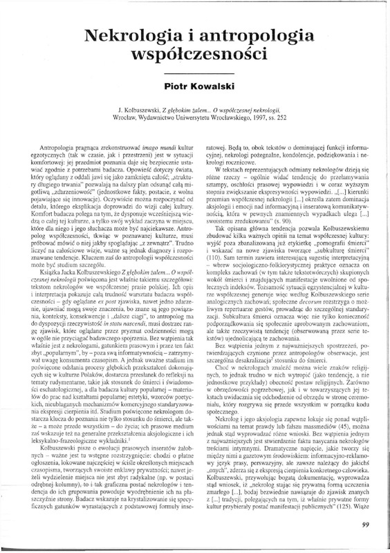 Nekrologia i antropologia współczesności / Polska Sztuka Ludowa - Konteksty 1998 t.52 z.2